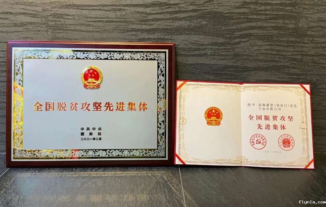 10、2019年1月获得由蔚县人民政府颁发的《2018年度东西部扶贫协作产业合作先进单位》。